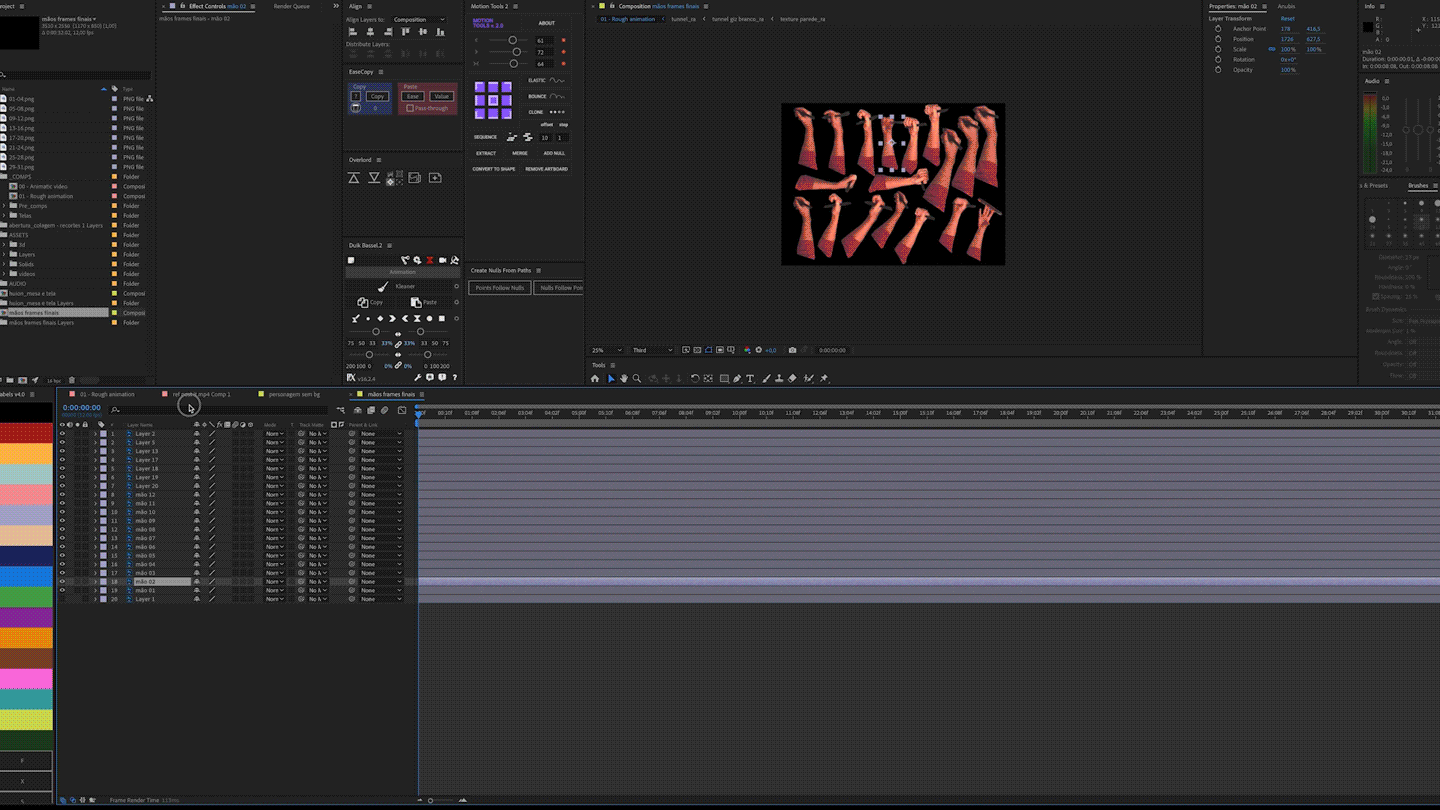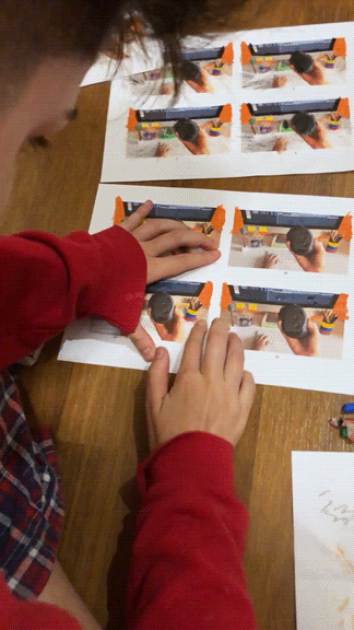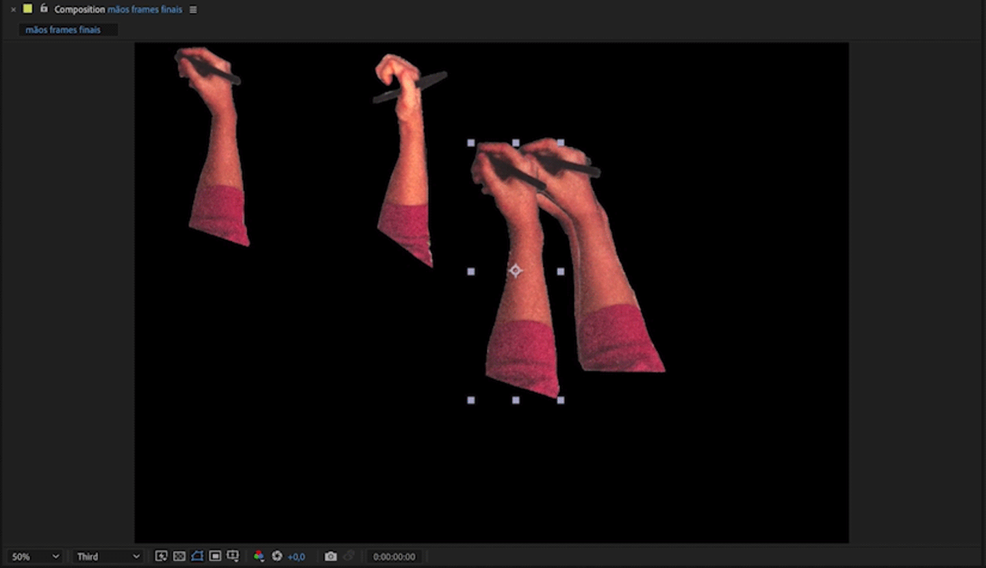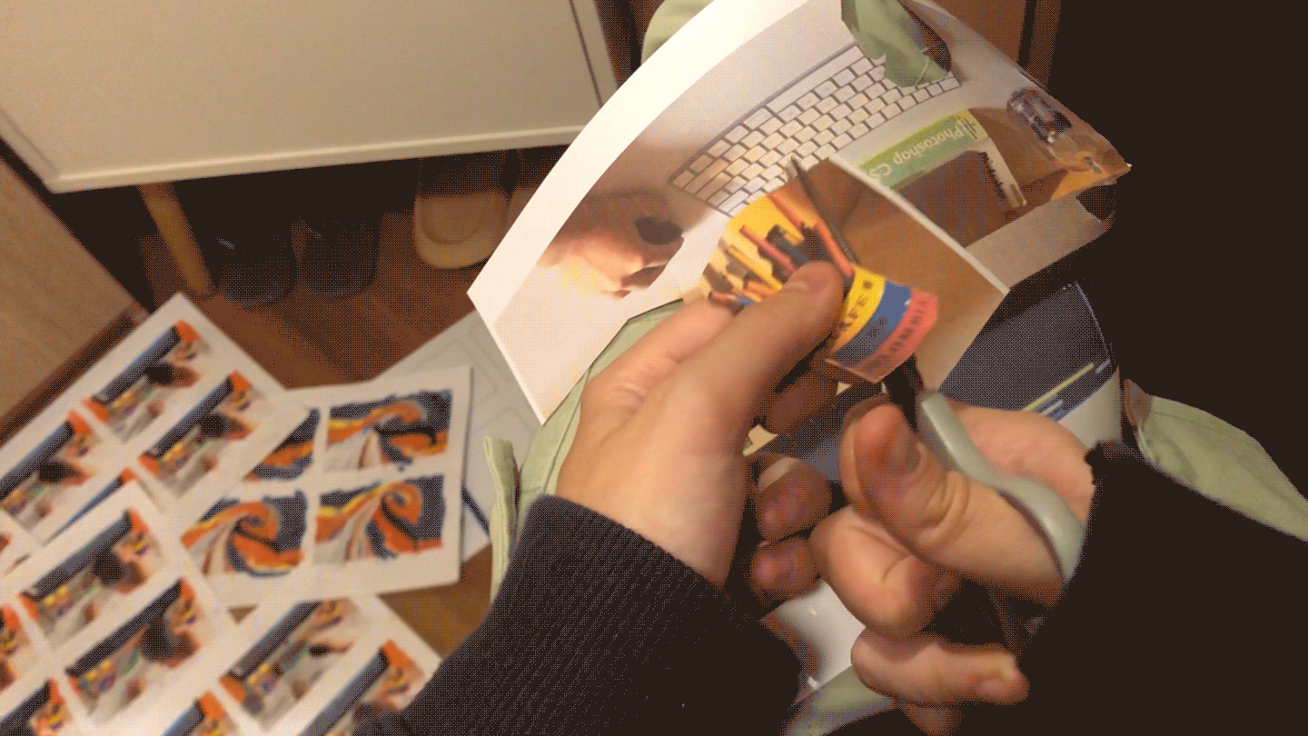 Each frame of the hand and props were printed, cut out and scanned