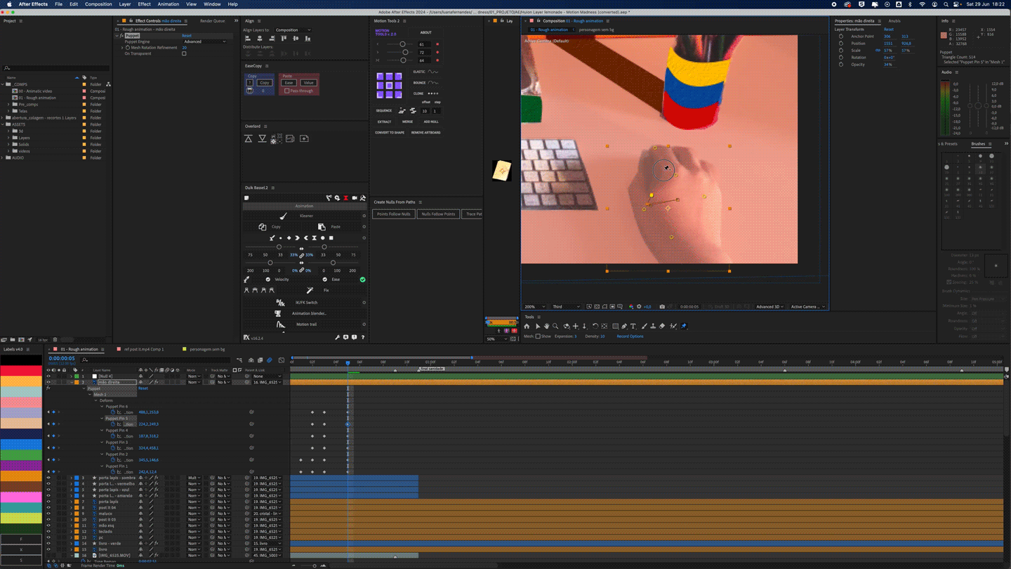 Papercut asset animated with puppet pins